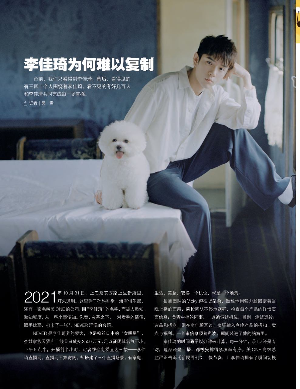采访结束,《新民周刊》记者问李佳琦:“你觉得李佳琦可以被复制吗?”李佳琦说:“任何主播都可以被复制,但李佳琦复制过来,就不再是李佳琦了。因为,‘李佳琦’三个字不再属于我自己,他属于所有女生、所有伙伴、所有人。”