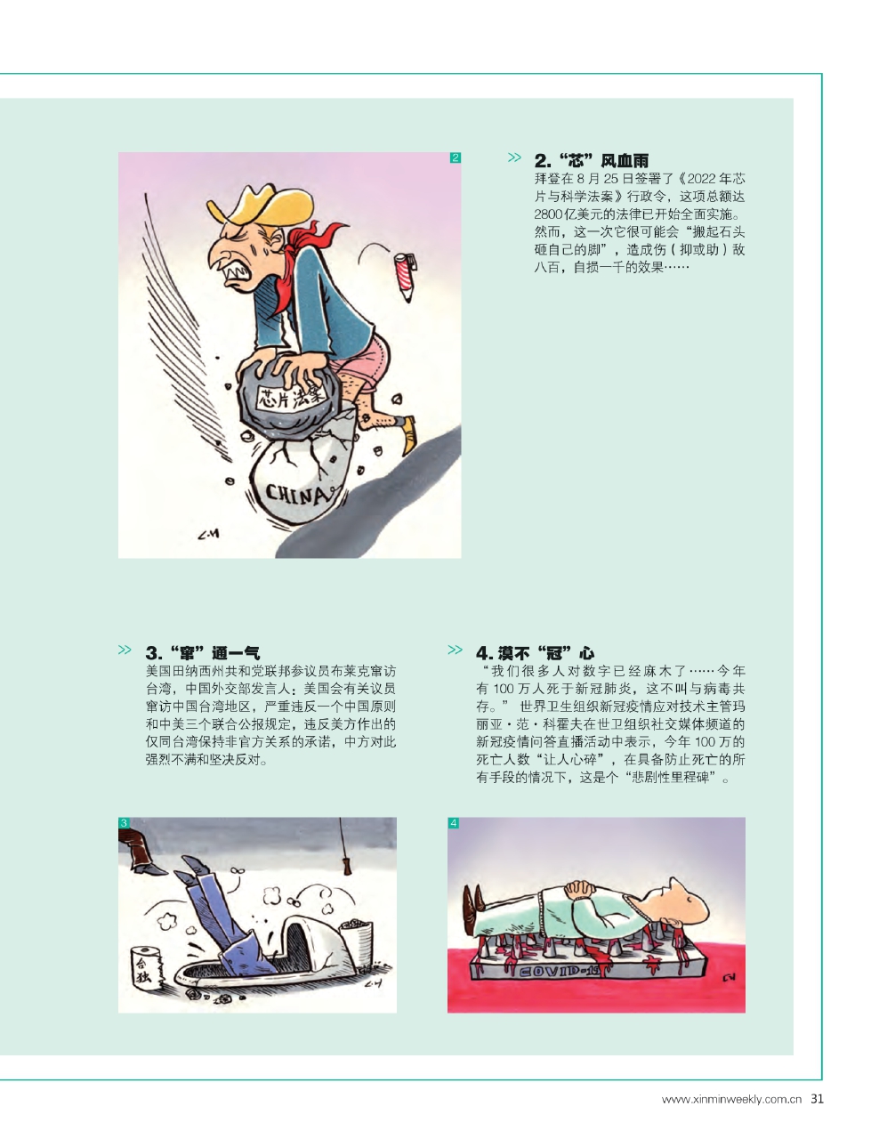 2.“芯”风血雨 拜登在8月25日签署了《2022年芯片与科学法案》行政令,这项总额达2800亿美元的法律已开始全面实施。然而,这一次它很可能会“搬起石头砸自己的脚”,造成伤(抑或助)敌八百,自损一千的效果……