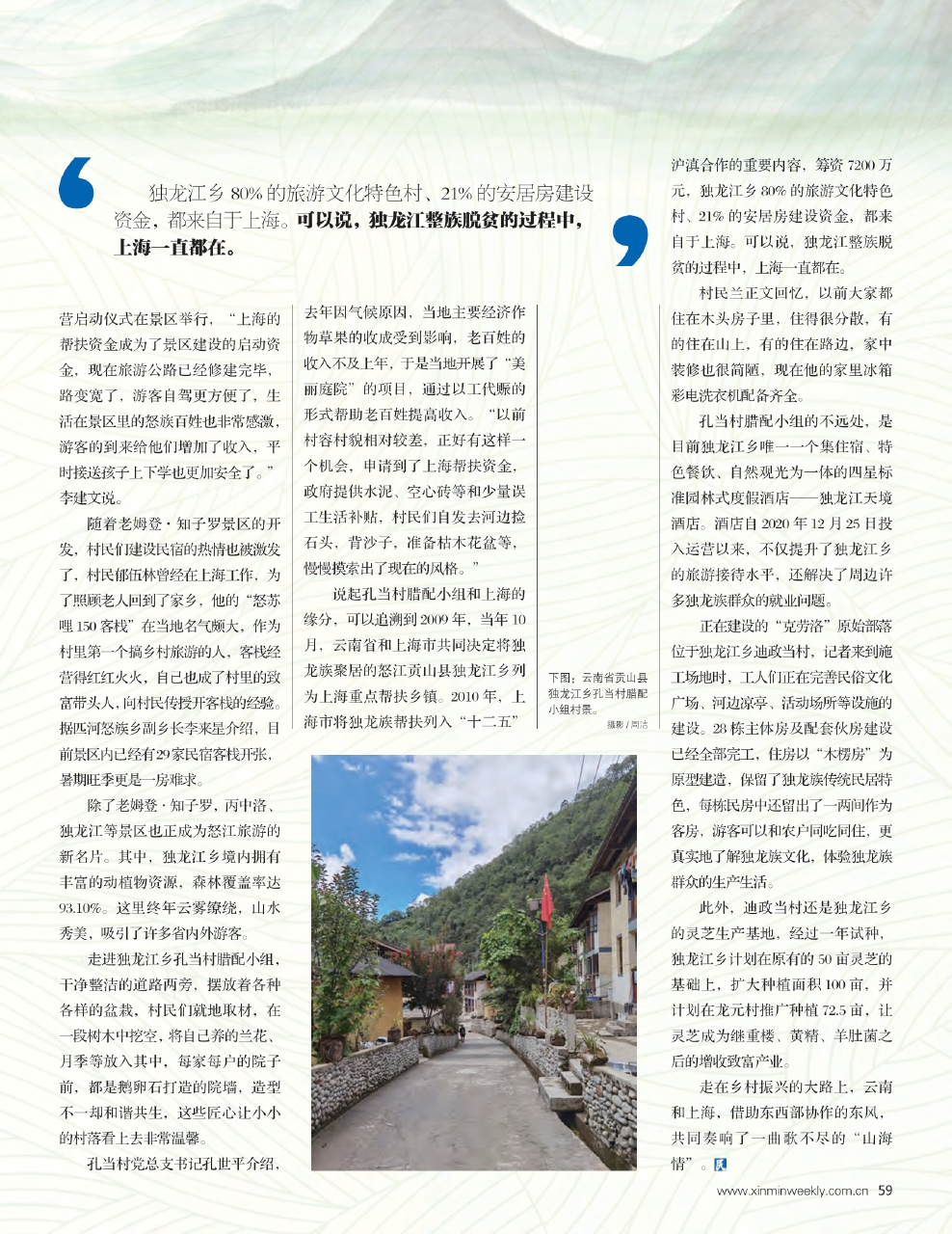 说起孔当村腊配小组和上海的缘分,可以追溯到2009年,当年10月,云南省和上海市共同决定将独龙族聚居的怒江贡山县独龙江乡列为上海重点帮扶乡镇。2010年,上海市将独龙族帮扶列入“十二五”沪滇合作的重要内容,筹资7200万元,独龙江乡80%的旅游文化特色村、21%的安居房建设资金,都来自于上海。可以说,独龙江整族脱贫的过程中,上海一直都在。