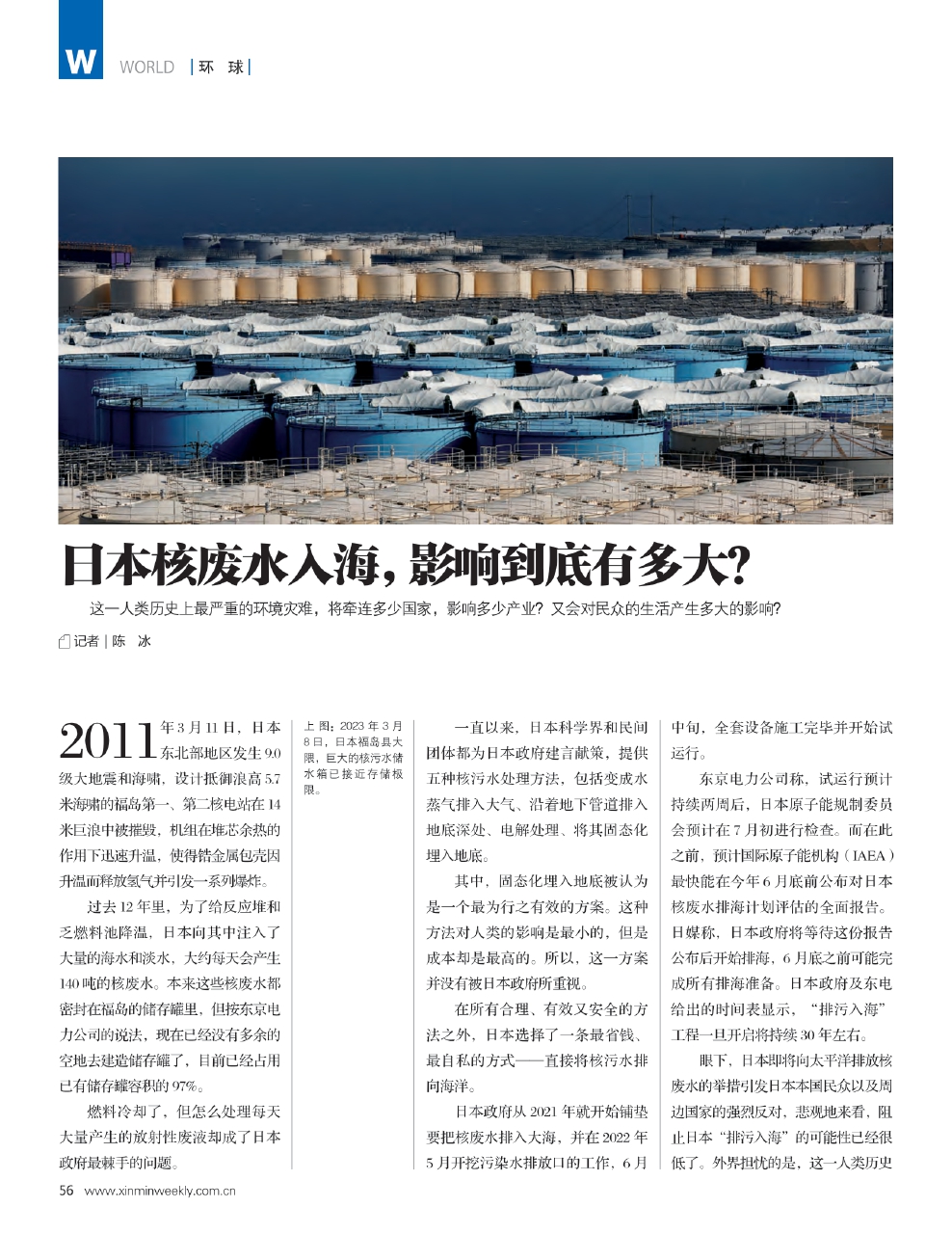 经过多年激辩,2023年3月,日本首相岸田文雄确认,将在今年“春季到夏季”把冷却福岛核电站核燃料的130多万吨核废水排入太平洋。日本政府声称核废水经过处理和稀释后是安全的,而且没有其他更好的办法,也得到了国际原子能机构的支持和监督。