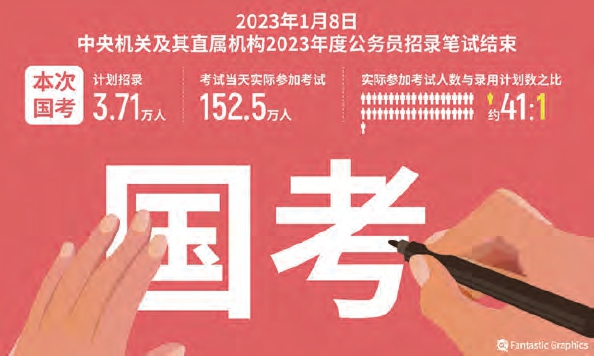 2023年,国考计划招录3.71万人,但报名总人数超过250万,岗位的平均竞争比为64:1。在2022年,国考报名人数212万人,实际录用人数仅3.12万,报录比甚至高达68∶1。