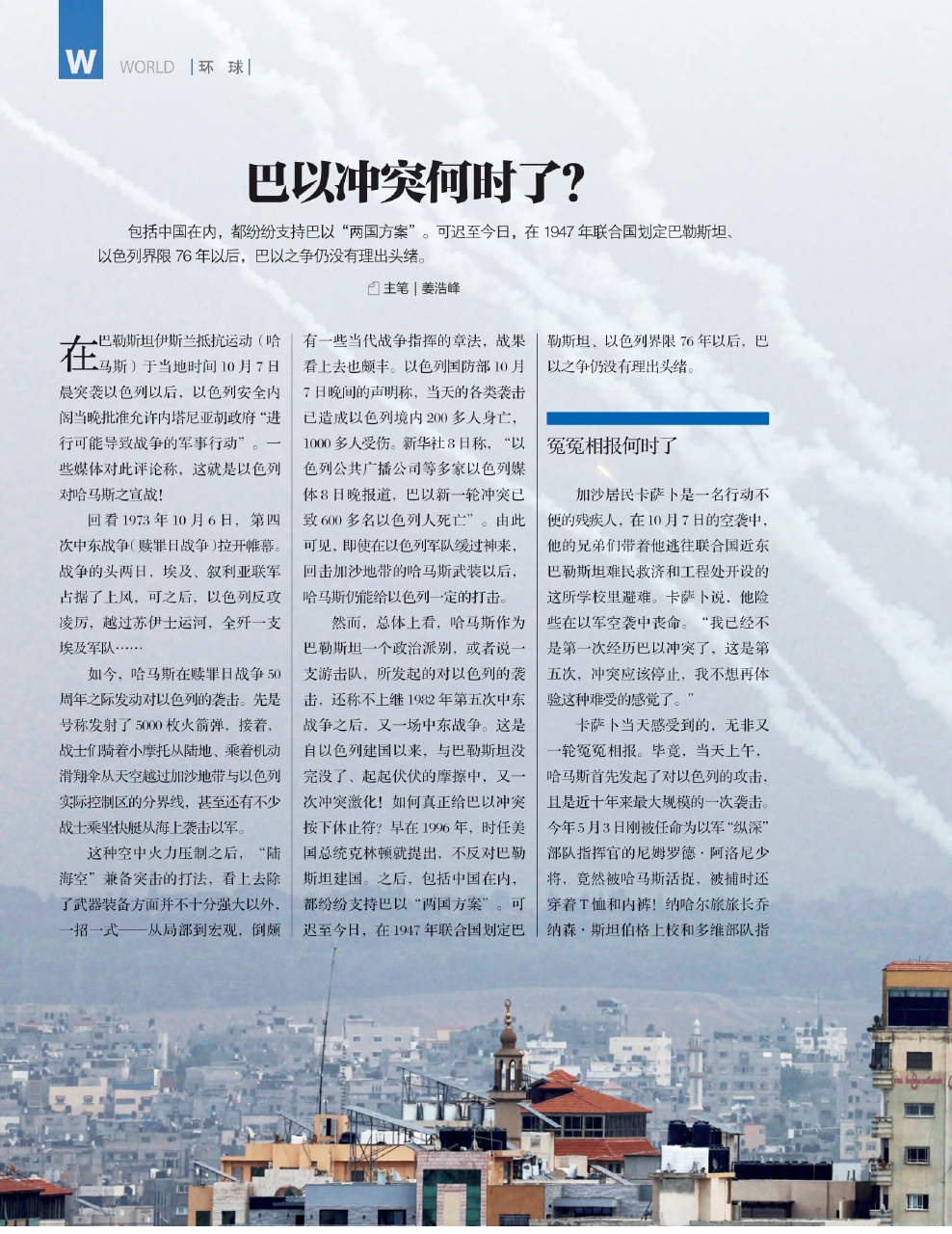 然而,总体上看,哈马斯作为巴勒斯坦一个政治派别,或者说一支游击队,所发起的对以色列的袭击,还称不上继1982年第五次中东战争之后,又一场中东战争。这是自以色列建国以来,与巴勒斯坦没完没了、起起伏伏的摩擦中,又一次冲突激化!如何真正给巴以冲突按下休止符?早在1996年,时任美国总统克林顿就提出,不反对巴勒斯坦建国。之后,包括中国在内,都纷纷支持巴以“两国方案”。可迟至今日,在1947年联合国划定巴勒斯坦、以色列界限76年以后,巴以之争仍没有理出头绪。