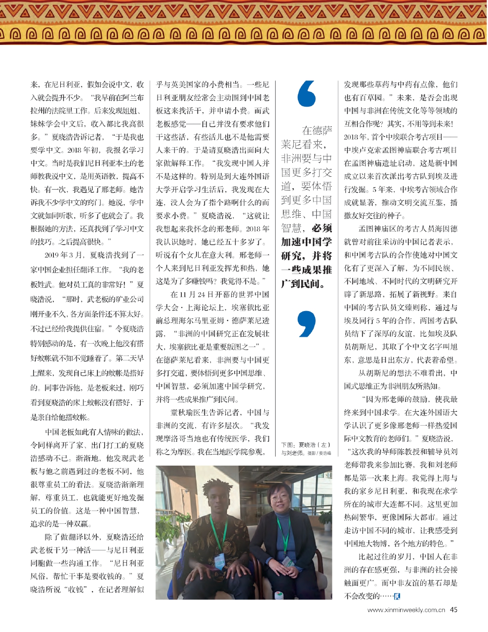 除了做翻译以外,夏晓浩还给武老板干另一种活——与尼日利亚同胞做一些沟通工作。“尼日利亚风俗,帮忙干事是要收钱的。”夏晓浩所说“收钱”,在记者理解似乎与英美国家的小费相当。一些尼日利亚朋友经常会主动围到中国老板这来找活干,并申请小费。而武老板感觉——自己并没有要求他们干这些活,有些活儿也不是他需要人来干的。于是请夏晓浩出面向大家做解释工作。“我发现中国人并不是这样的。特别是到大连外国语大学开启学习生活后,我发现在大连,没人会为了指个路啊什么的而要求小费。”夏晓浩说,“这就让我想起来我怀念的邢老师。2018年我认识她时,她已经五十多岁了。听说有个女儿在意大利。邢老师一个人来到尼日利亚发挥光和热,她这是为了多赚钱吗?我觉得不是。”