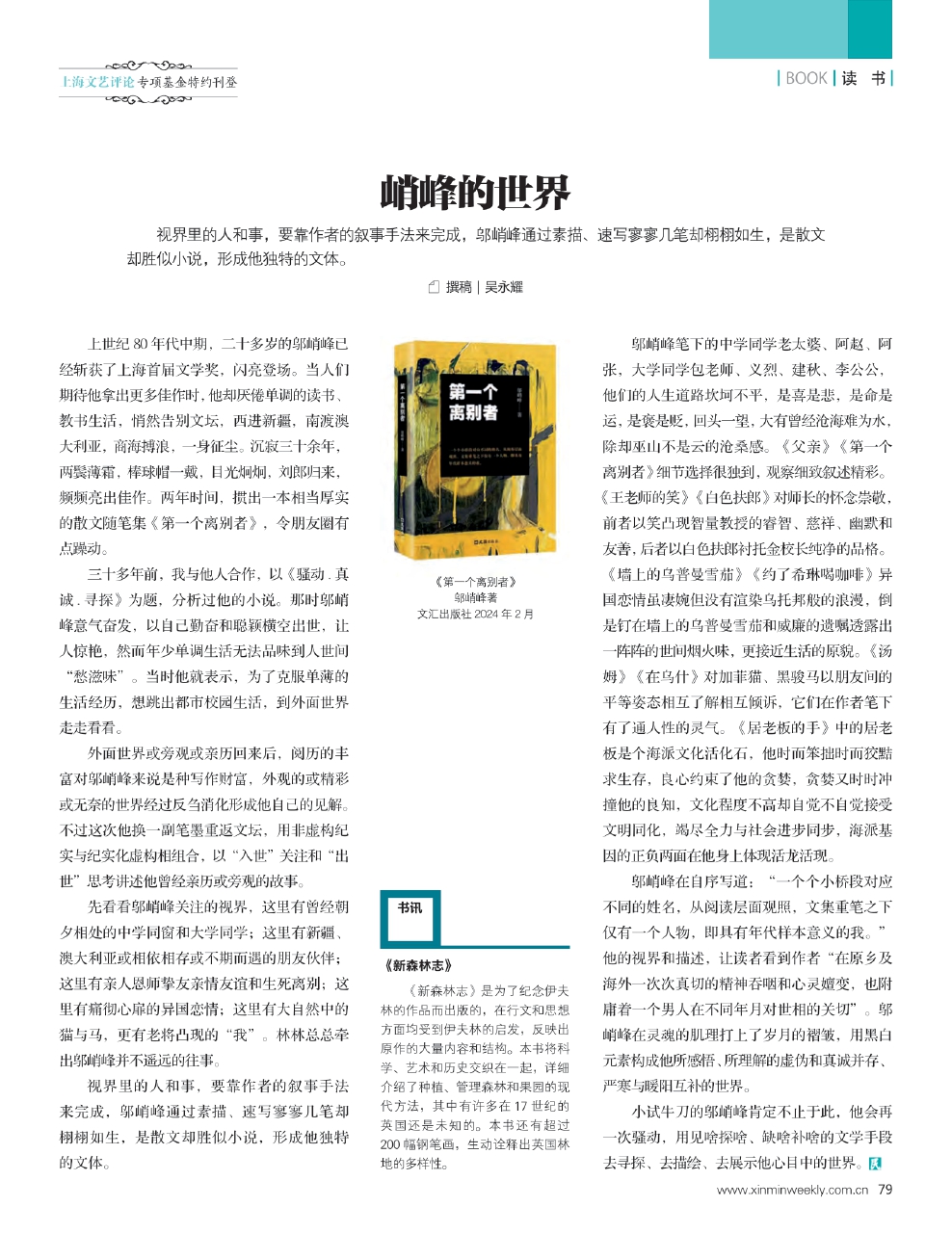 《第一个离别者》 邬峭峰著 文汇出版社2024年2月