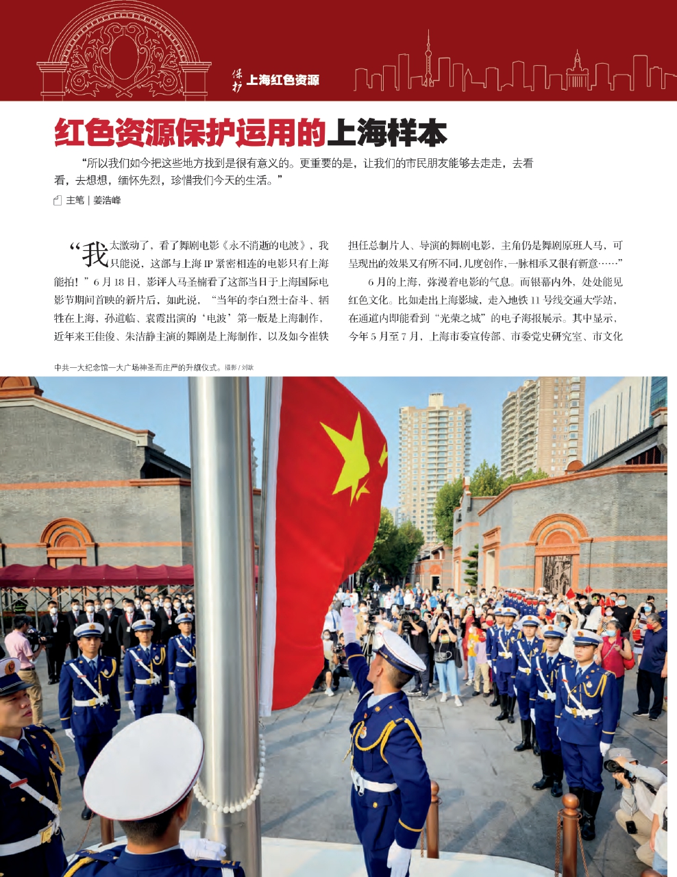中共一大纪念馆一大广场神圣而庄严的升旗仪式。摄影/刘歆