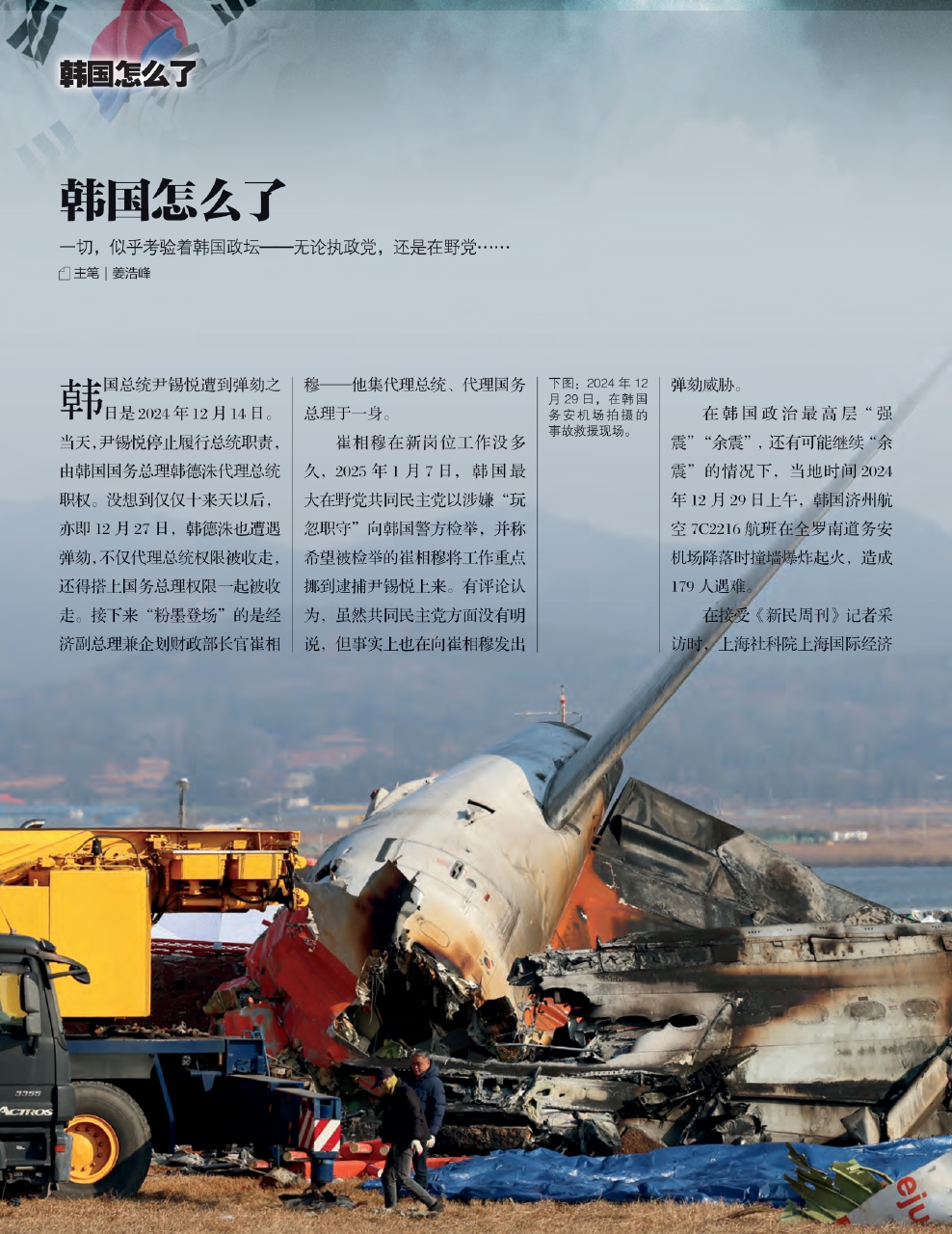 在韩国政治最高层“强震”“余震”,还有可能继续“余震”的情况下,当地时间2024年12月29日上午,韩国济州航空7C2216航班在全罗南道务安机场降落时撞墙爆炸起火,造成179人遇难。