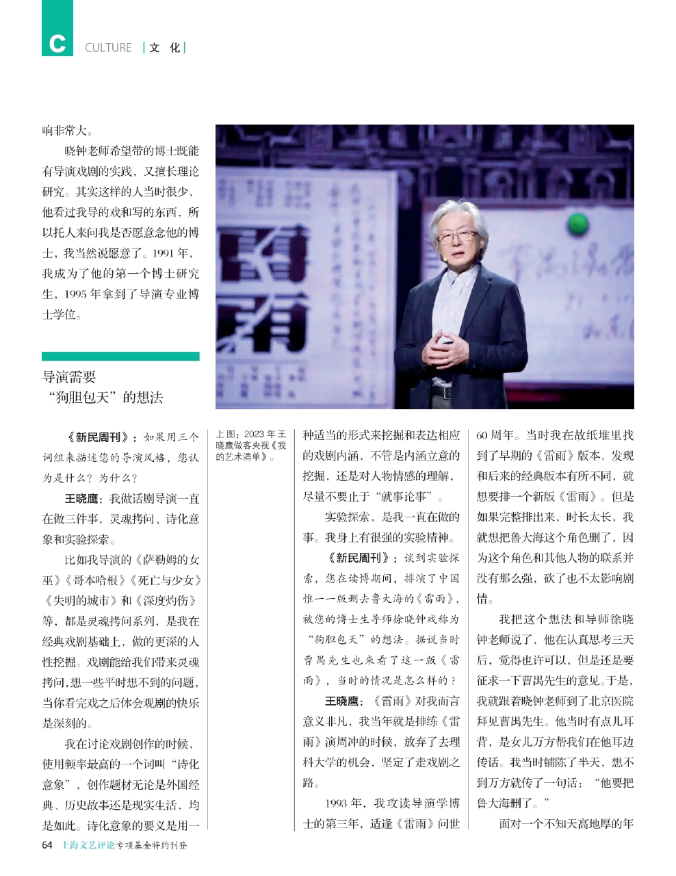 王晓鹰:我做话剧导演一直在做三件事,灵魂拷问、诗化意象和实验探索。