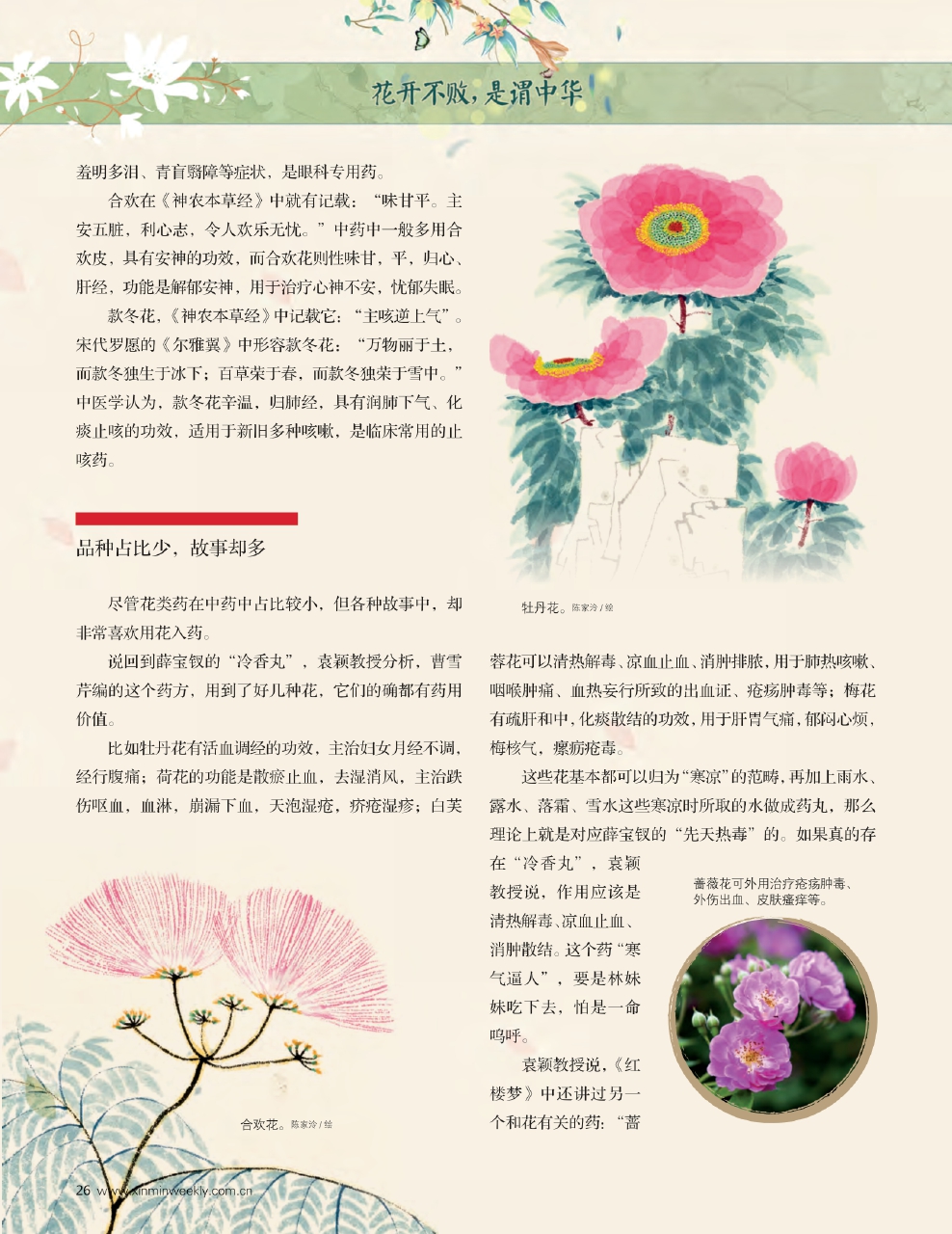 说回到薛宝钗的“冷香丸”,袁颖教授分析,曹雪芹编的这个药方,用到了好几种花,它们的确都有药用价值。