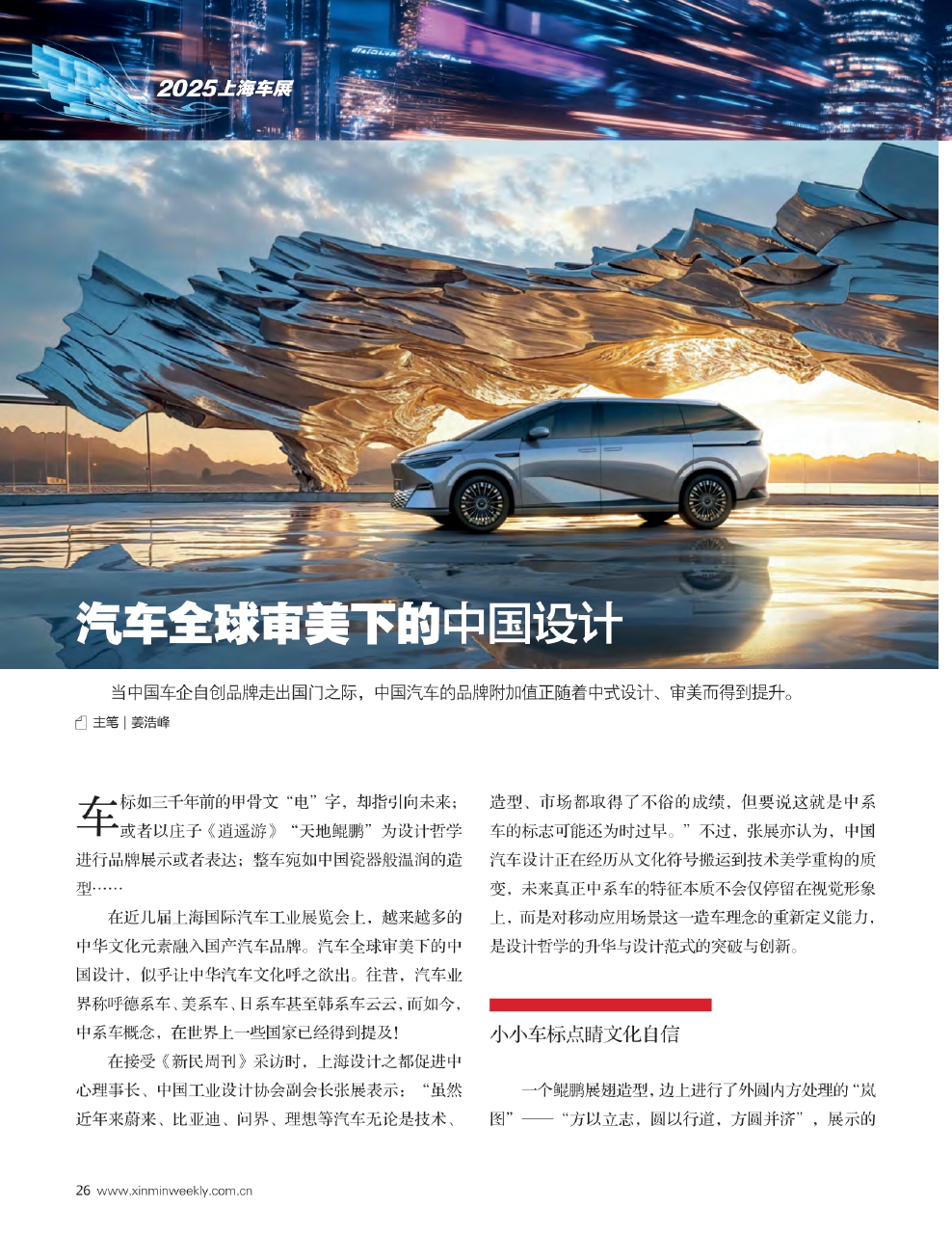 在接受《新民周刊》采访时,上海设计之都促进中心理事长、中国工业设计协会副会长张展表示:“虽然近年来蔚来、比亚迪、问界、理想等汽车无论是技术、造型、市场都取得了不俗的成绩,但要说这就是中系车的标志可能还为时过早。”不过,张展亦认为,中国汽车设计正在经历从文化符号搬运到技术美学重构的质变,未来真正中系车的特征本质不会仅停留在视觉形象上,而是对移动应用场景这一造车理念的重新定义能力,是设计哲学的升华与设计范式的突破与创新。