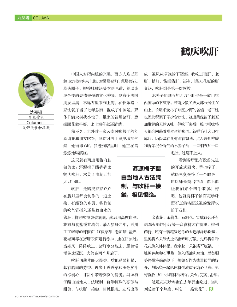 中国人对猪内脏的兴趣,西方人难以理解。欧洲游客来上海,对酱爆猪肝、葱爆腰花、草头圈子、糟香肚肺汤等本帮味道,总以谈虎色变的表情来强调文化差异。我有个法国朋友里奥,不远万里来到上海,在长乐路一家法餐厅当了七年总厨,混成了中国通,双休日满大街找小馆子,谁家的酱爆猪肝、葱爆腰花做得好,比上海爷叔还清楚。