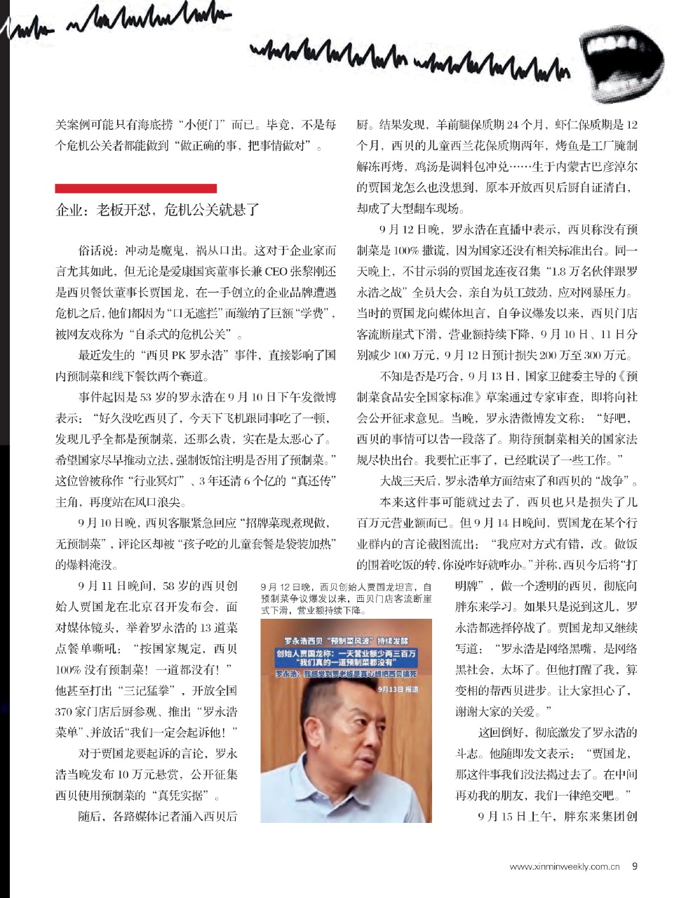 值得一提的是,在“西贝PK罗永浩”期间,网传西贝“十年付了6000万元咨询费”的华与华营销咨询有限公司也似乎不够专业——9月12日,华与华创始人华杉连发三条微博,其中提到:“这不是危机公关,因为根本就没有危机,是贾国龙怒了,要硬杠网络黑嘴。”华杉还称赞贾国龙“勇往直前,不苟且偷生”,“西贝可以说是中国最好的企业之一”。