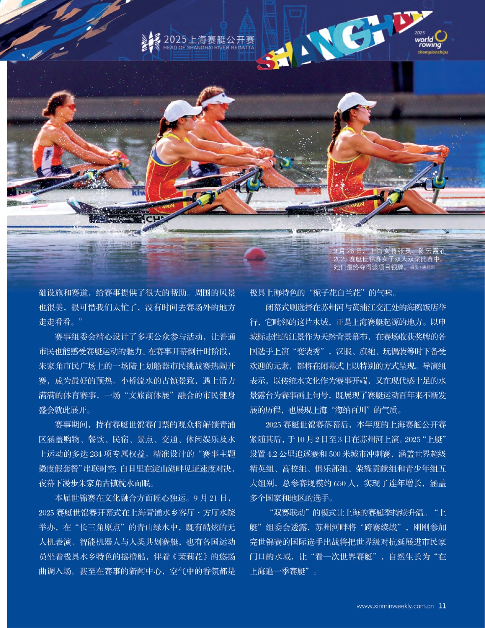 从苏州河上的百年回响到淀山湖畔的世界舞台,上海与赛艇运动的“双向奔赴”,赛艇世锦赛与上海赛艇公开赛的“双赛联动”,书写了体育与城市共生共荣的精彩篇章。在赛艇运动的推动下,上海正以更加开放、奋进、时尚的姿态,向世界展示其独特的城市魅力和无限活力。