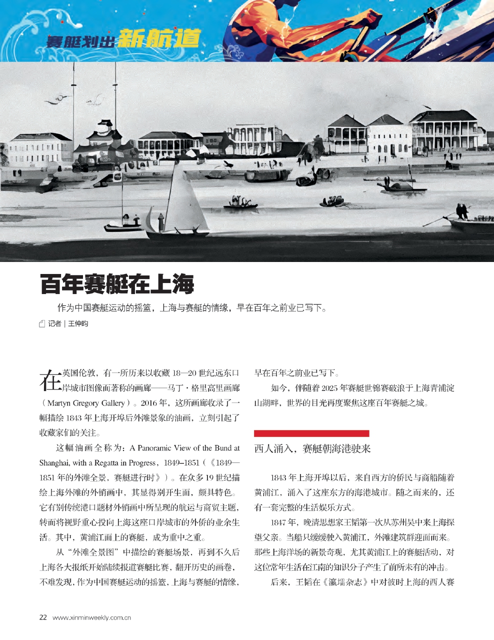 1847年,晚清思想家王韬第一次从苏州吴中来上海探望父亲。当船只缓缓驶入黄浦江,外滩建筑群迎面而来。那些上海洋场的新景奇观,尤其黄浦江上的赛艇活动,对这位常年生活在江南的知识分子产生了前所未有的冲击。