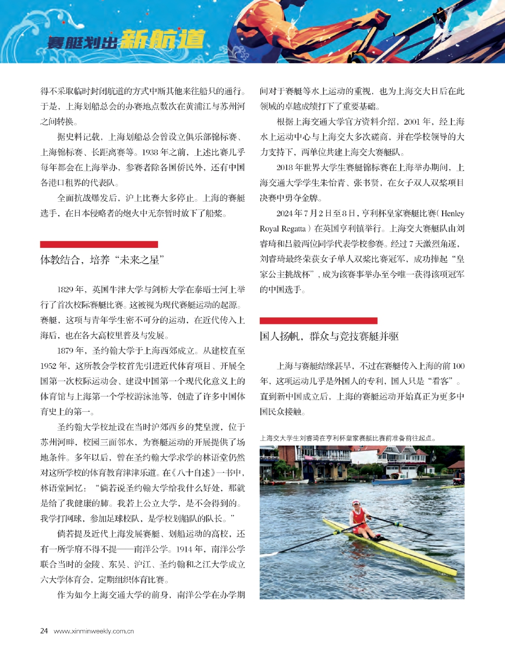 2024年7月2日至8日,亨利杯皇家赛艇比赛(Henley Royal Regatta)在英国亨利镇举行。上海交大赛艇队由刘睿琦和吕毅两位同学代表学校参赛。经过7天激烈角逐,刘睿琦最终荣获女子单人双桨比赛冠军,成功捧起“皇家公主挑战杯”,成为该赛事举办至今唯一获得该项冠军的中国选手。
