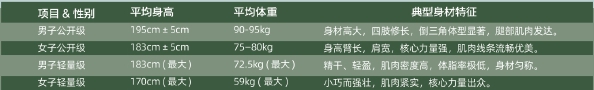 赛艇运动员被誉为“体能之王”,其身材是功能性与美学的完美结合。赛艇运动员的体型具有鲜明的项目特征(以下为顶尖运动员平均数据概览):