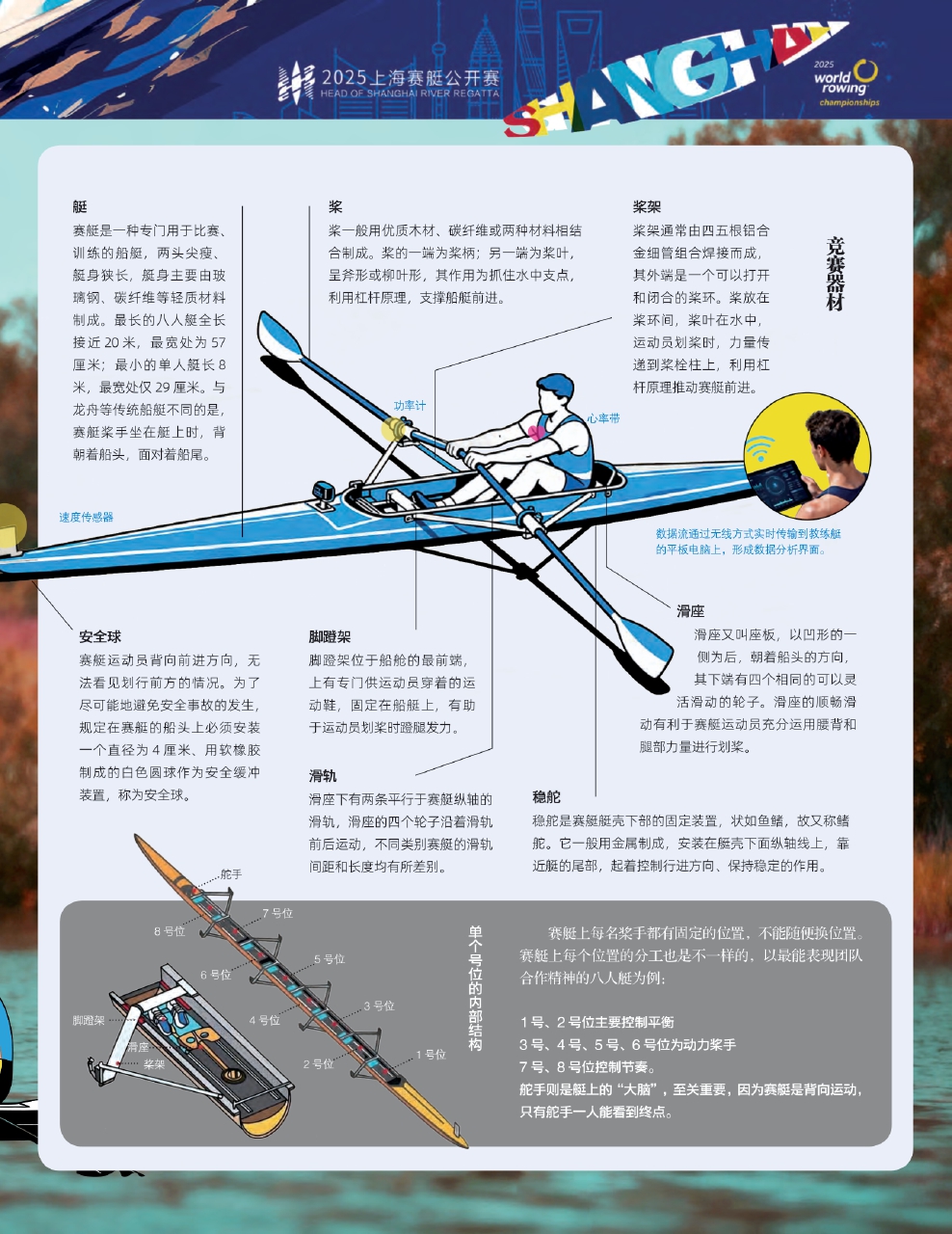 舵手则是艇上的“大脑”,至关重要,因为赛艇是背向运动,只有舵手一人能看到终点。