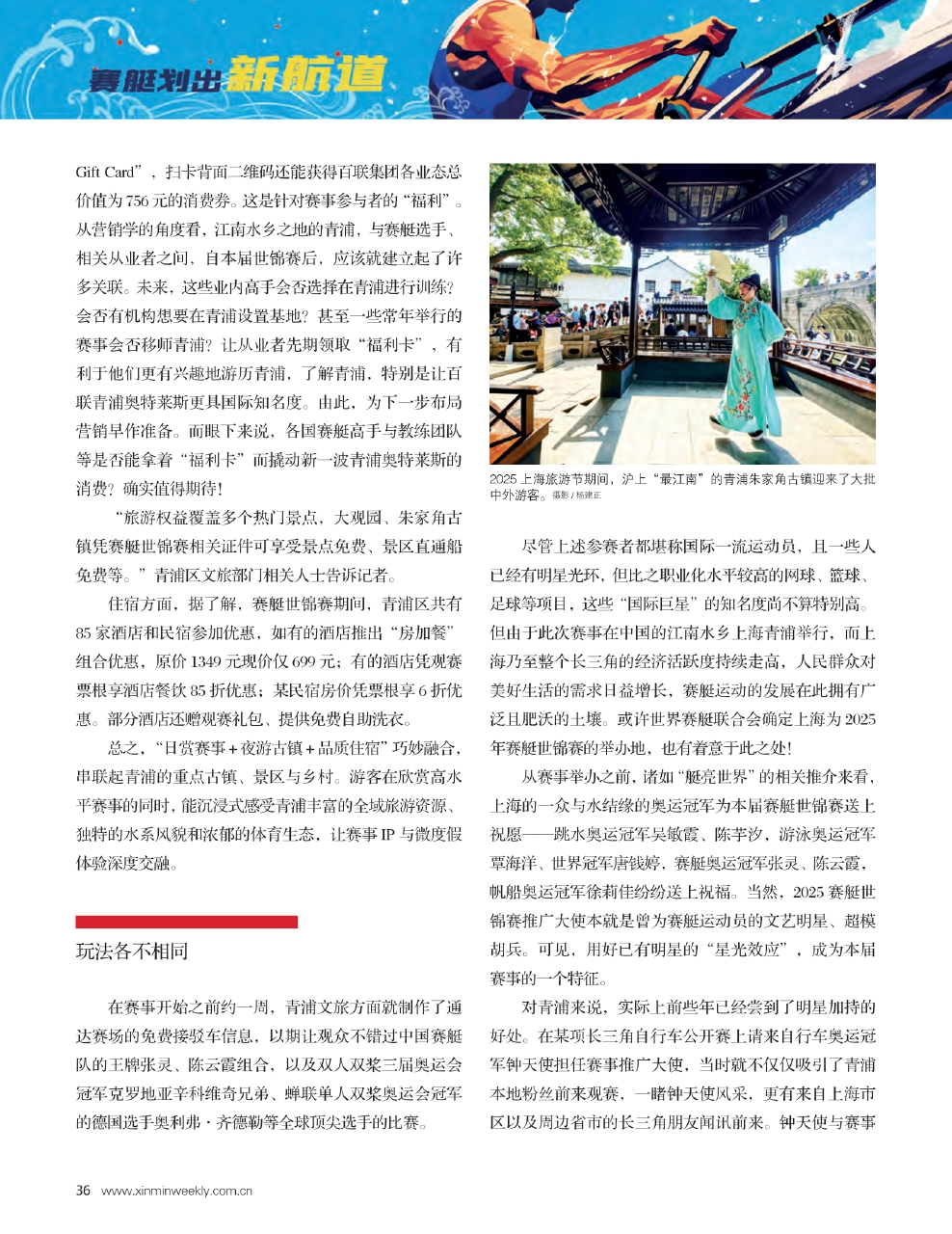 “日赏赛事+夜游古镇+品质住宿”巧妙融合,串联起青浦的重点古镇、景区与乡村,让赛事IP与微度假体验深度交融。