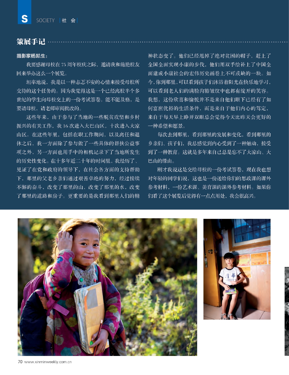 因为参与当地脱贫攻坚和乡村振兴发展帮扶工作的缘故,近20年来,复旦附中1968届毕业生杨凯生先后16次前往四川省大巴山区、10进大凉山区,用镜头记录了大山深处的历史性变化。一幅幅朴素、真挚的作品背后,是一段段动人的故事。