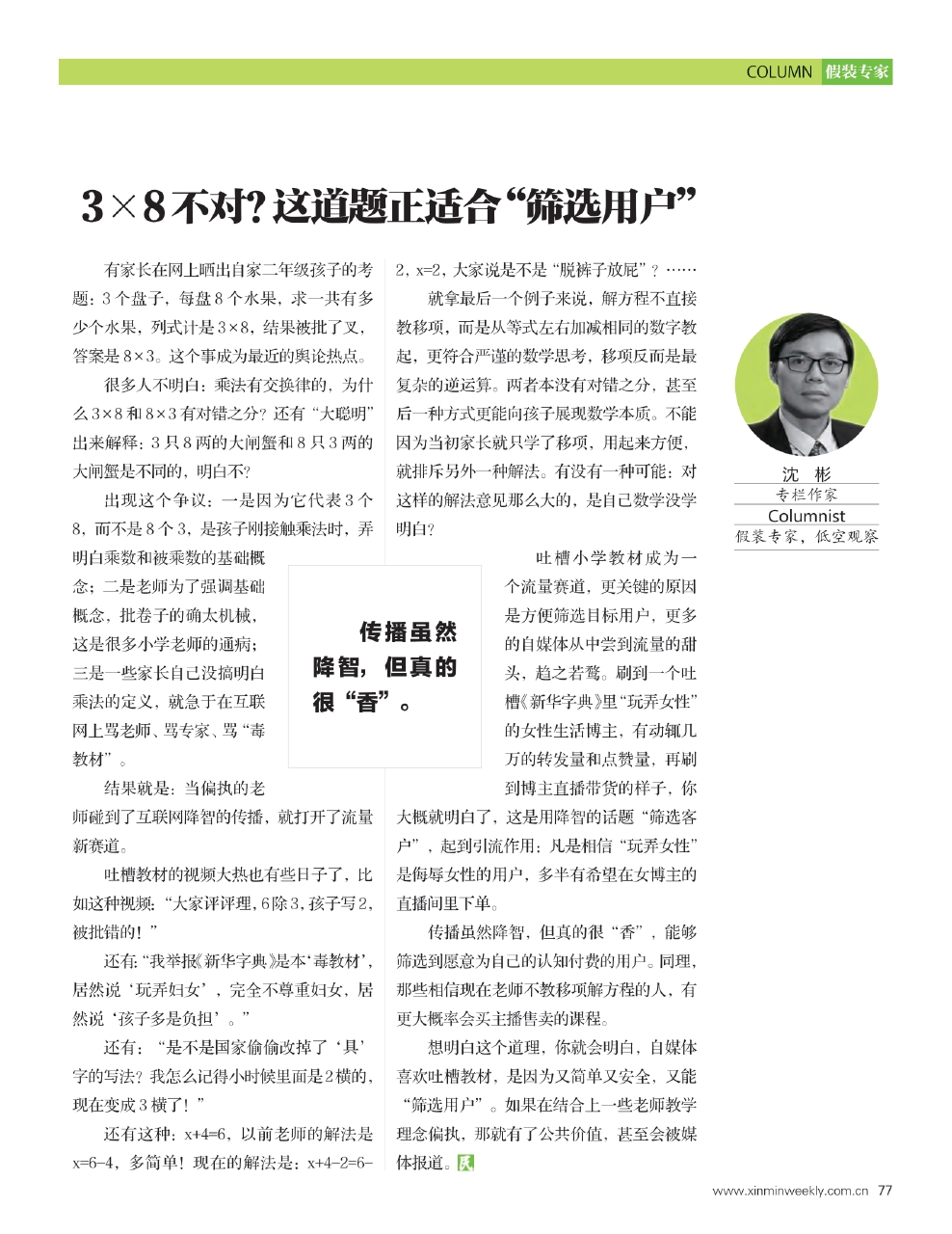 想明白这个道理,你就会明白,自媒体喜欢吐槽教材,是因为又简单又安全,又能“筛选用户”。如果在结合上一些老师教学理念偏执,那就有了公共价值,甚至会被媒体报道。