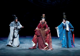 “逼父”一折,则是父子情。演员吴佳燕演出了刘禅复杂的内心世界。刘禅自幼缺爱,又在君王规范的驯化中长大,既无力扛起江山倾覆的重压,又难以割舍父子亲情;面对儿子以死相谏,吴佳燕用颤抖的手、闪避的眼神以及克制的肢体语言,将刘禅身为君王需维系威仪、身为父亲却心痛如绞的撕裂感层层剖开,不仅打破了“庸主”的扁平化窠臼,更让刘禅成为一个背负时代悲剧的“凡人”,多了份深沉的共情力。