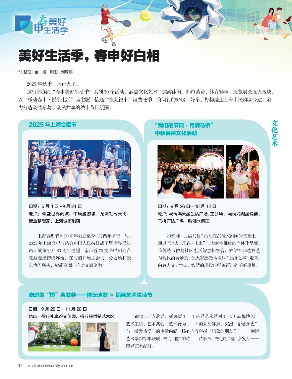 这里举办的“春申美好生活季”系列50个活动,涵盖文化艺术、旅游休闲、都市消费、体育赛事、展览展会五大板块,以“乐动春申·悦享生活”为主题,恰逢“金九银十”消费旺季,将闵行的好房、好车、好物送达上海市民群众身边,着力营造全域参与、全民共享的城市节日氛围。