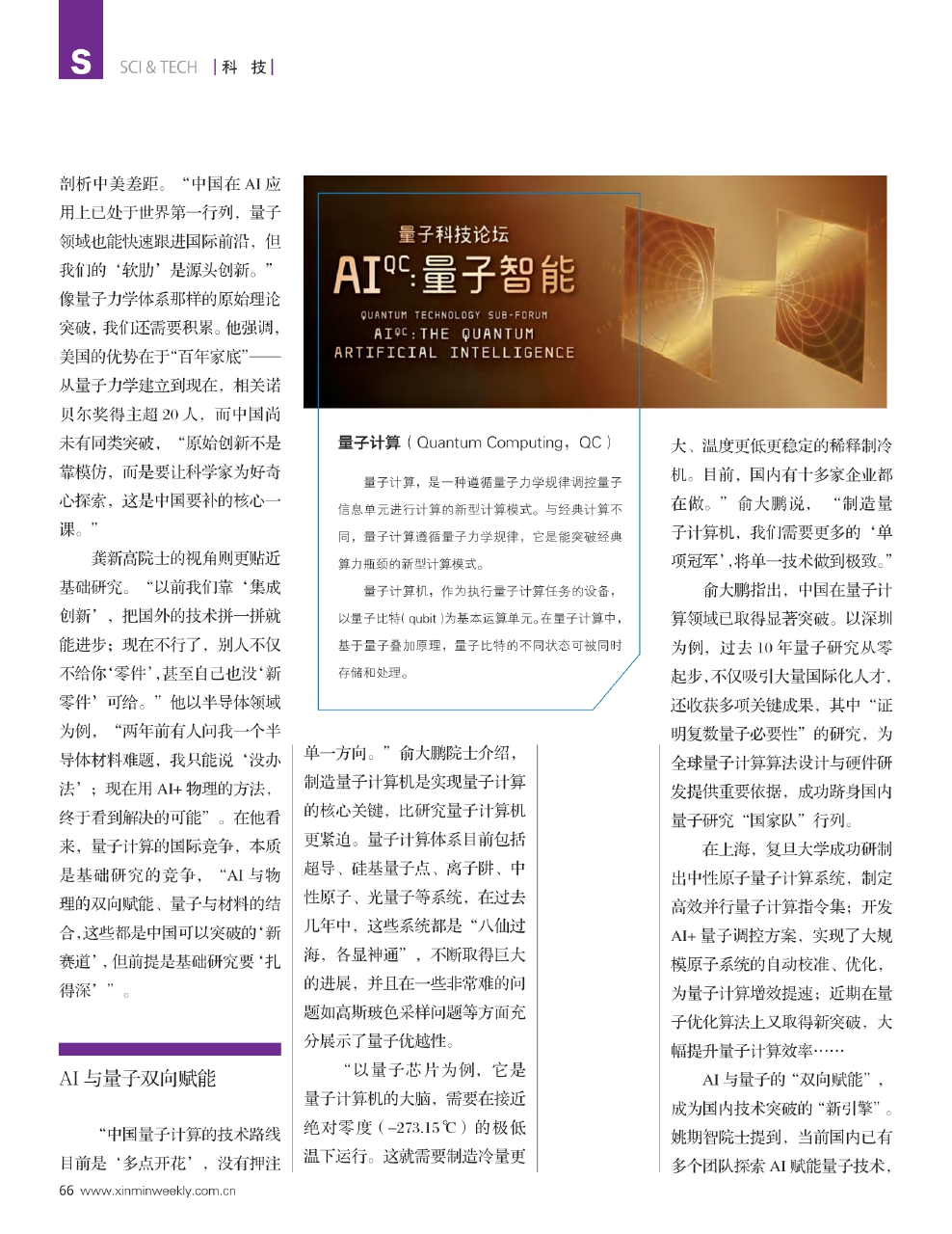 作为下一代信息技术的“皇冠明珠”,量子计算正重塑大国科技战略竞争格局,各国均在推动量子计算从基础研究方向向工程化、产业化快速迈进。中国如何在技术突破、产业落地、人才培养上实现从“并跑”到“领跑”的跨越?《新民周刊》记者在会后采访了姚期智、俞大鹏、龚新高三位中国科学院院士,解码中国量子计算的现状与未来。