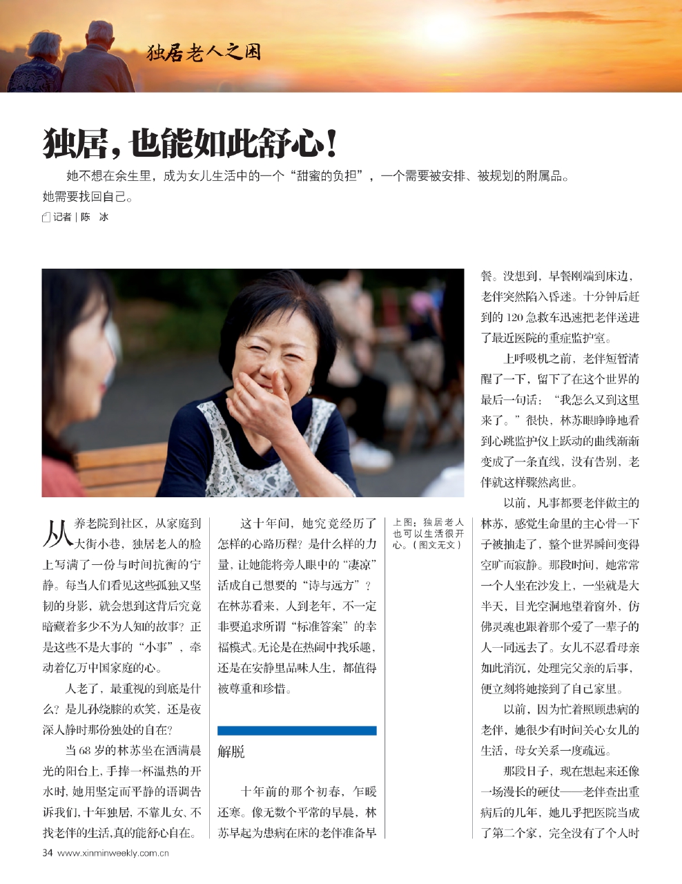 林苏说自己作为一名独居十年的老年女性,不是对感情失望,而恰恰是知道自己想要的是什么。对她而言,高质量的独处,远胜于低质量的陪伴。“人活一世,最大的幸福不过是成就自己想要的生活。”