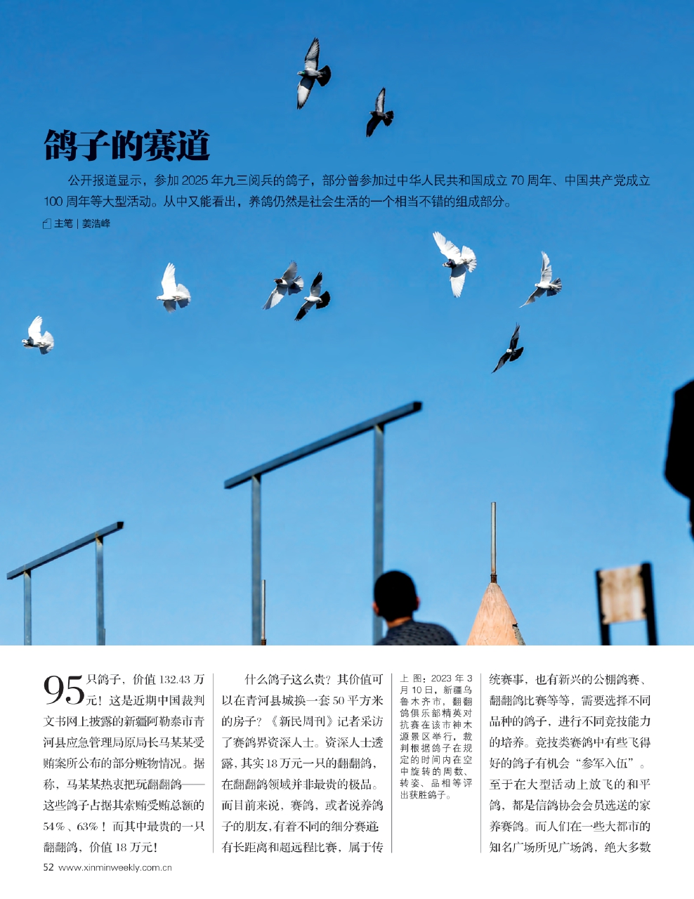 公开报道显示,参加2025年九三阅兵的鸽子,部分曾参加过中华人民共和国成立70周年、中国共产党成立100周年等大型活动。从中又能看出,养鸽仍然是社会生活的一个相当不错的组成部分。