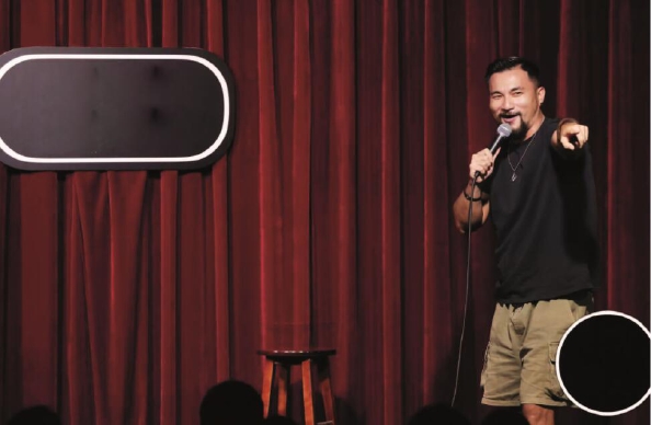 而真正与脱口秀结缘,则要追溯到2020年。彼时疫情阻隔,菲律宾的潜水生意大受影响。“从小看80后脱口秀,到后来的脱口秀大会,不是都说人人都能讲5分钟脱口秀,心想这不正好能推广一下我的店吗?”这个听起来有些“无厘头”的初衷,促使他联系了上海的橘子脱口秀俱乐部,从搬椅子、排座位的志愿者干起。他就这样站在舞台后,默默听了一阵,“啥也不懂,就光听,自己摸索”。后来俱乐部举办读稿会,他抱着试一试的心态写了第一个关于潜水学生的段子。结果冷场,橘子老板直言不讳:“太偏了,没人听得懂。”