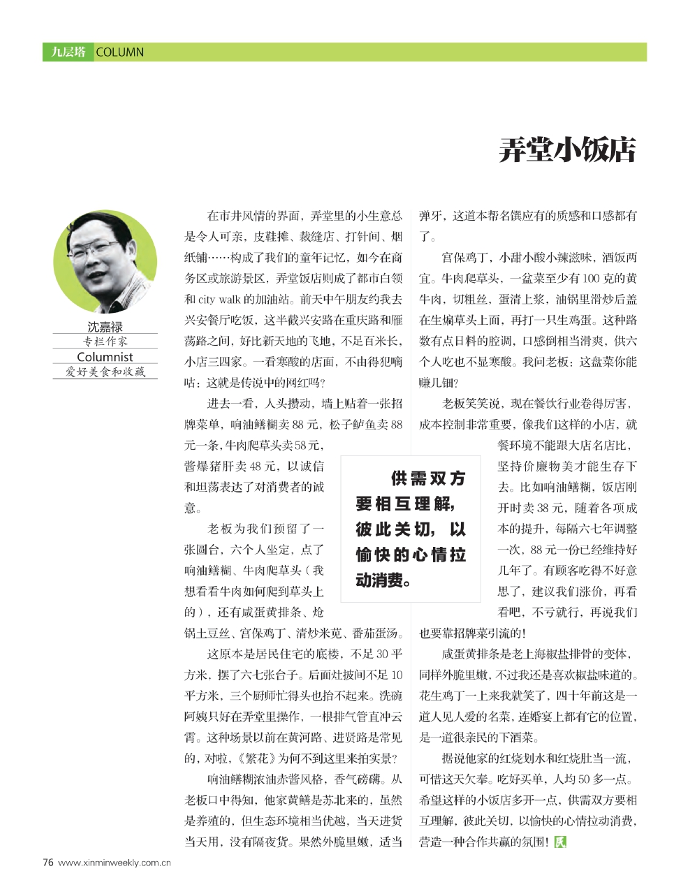 在市井风情的界面,弄堂里的小生意总是令人可亲,皮鞋摊、裁缝店、打针间、烟纸铺……构成了我们的童年记忆,如今在商务区或旅游景区,弄堂饭店则成了都市白领和city walk的加油站。前天中午朋友约我去兴安餐厅吃饭,这半截兴安路在重庆路和雁荡路之间,好比新天地的飞地,不足百米长,小店三四家。一看寒酸的店面,不由得犯嘀咕:这就是传说中的网红吗?