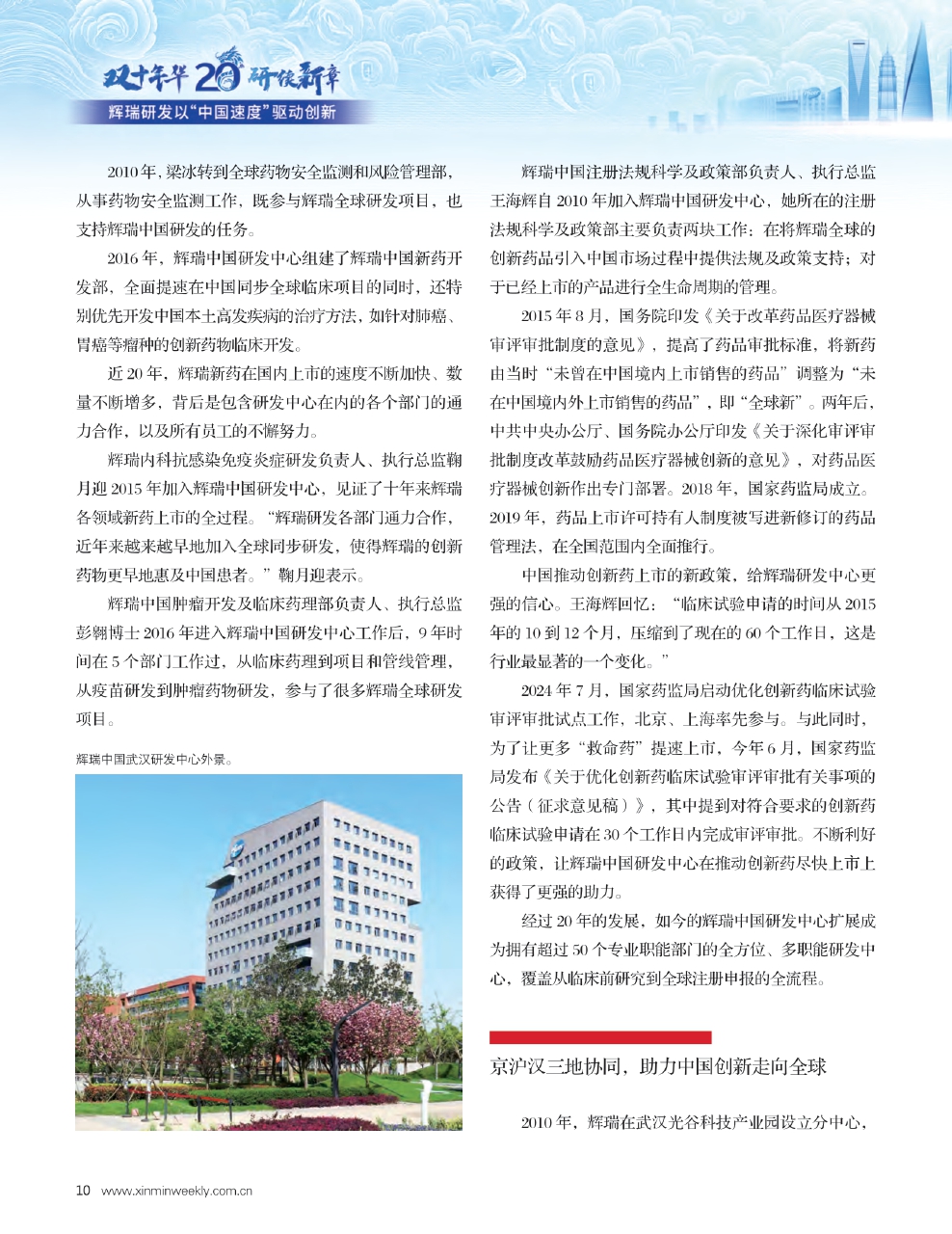 2010年,辉瑞在武汉光谷科技产业园设立分中心,大大拓展了辉瑞在国内的研发规模和合作领域。