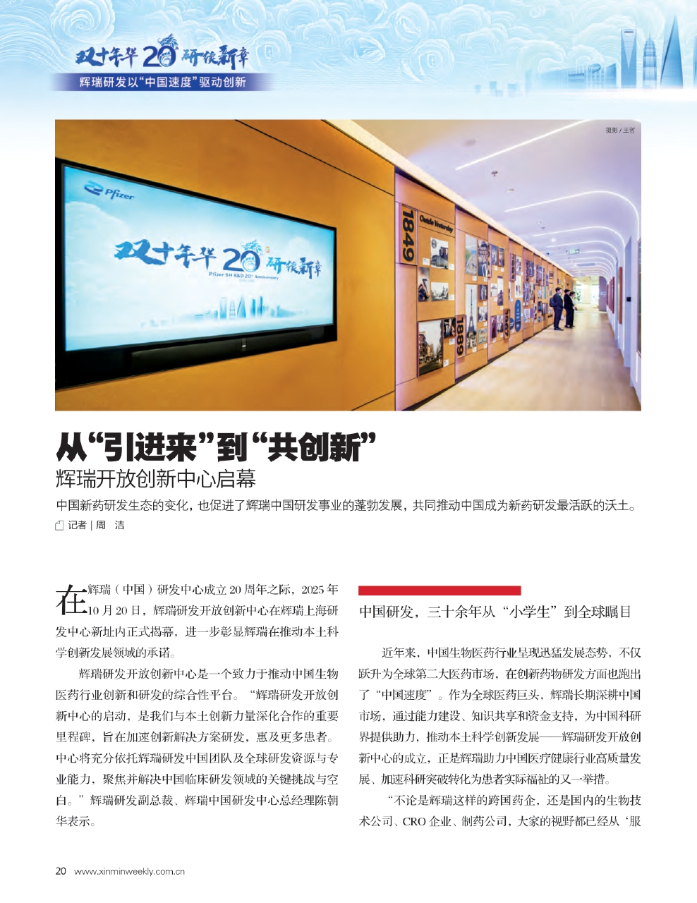 在辉瑞(中国)研发中心成立20周年之际,2025年10月20日,辉瑞研发开放创新中心在辉瑞上海研发中心新址内正式揭幕,进一步彰显辉瑞在推动本土科学创新发展领域的承诺。