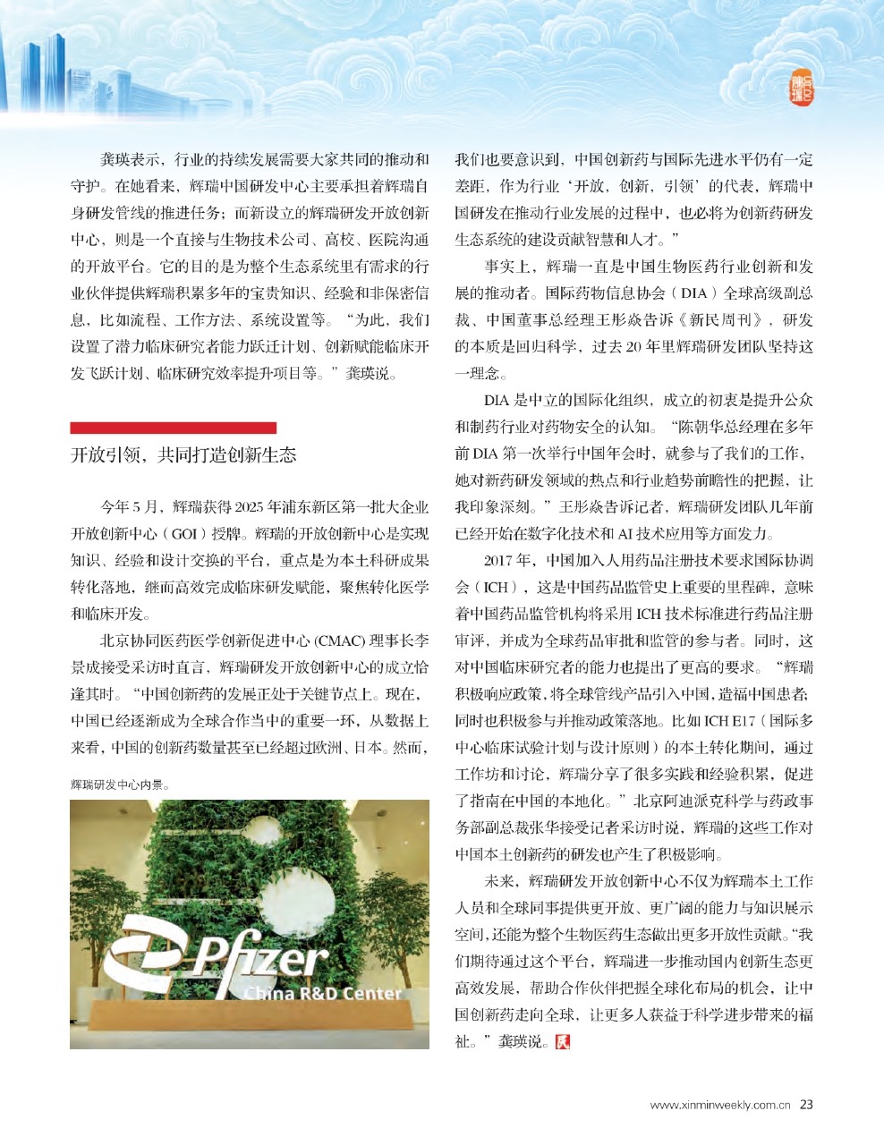 事实上,辉瑞一直是中国生物医药行业创新和发展的推动者。国际药物信息协会(DIA)全球高级副总裁、中国董事总经理王彤焱告诉《新民周刊》,研发的本质是回归科学,过去20年里辉瑞研发团队坚持这一理念。