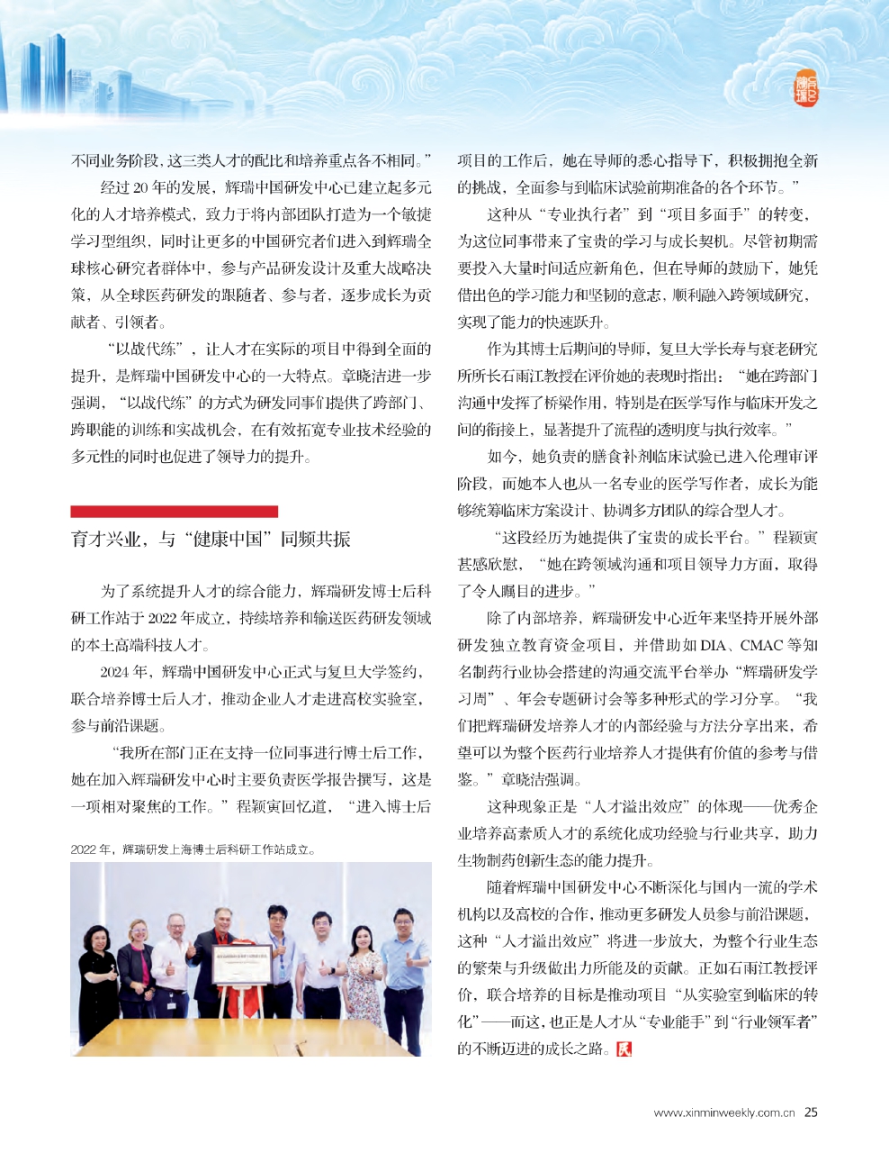 在中国医药创新生态中,跨国药企不仅是新药研发的重要力量,更成为高端人才培养与溢出的关键平台。辉瑞中国研发中心便是其中典型代表。过去20年间,辉瑞不仅构建起覆盖早期研究到临床开发的完整研发体系,更通过与高校、医院等机构深度合作,形成了一套“以战代练、跨界共育”的人才培养机制,推动了一批批具备国际视野与实践能力的专业人才走向行业更广阔舞台。
