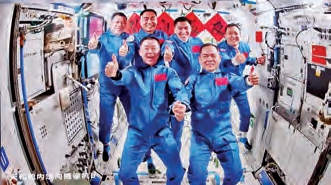 在载人飞船与空间站组合体成功实现自主快速交会对接后,神舟二十一号航天员乘组从飞船返回舱进入轨道舱。4时58分,在轨执行任务的神舟二十号航天员乘组顺利打开“家门”,欢迎远道而来的神舟二十一号航天员乘组入驻中国空间站,这是中国航天史上第7次太空会师。随后,两个航天员乘组拍下“全家福”,共同向牵挂他们的全国人民报平安。