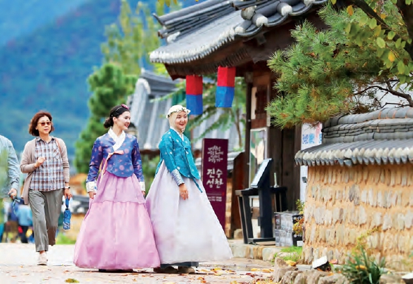 上图:10月16日,游客参观韩国庆州的景区校村,亚太旅游产业前景看好。
