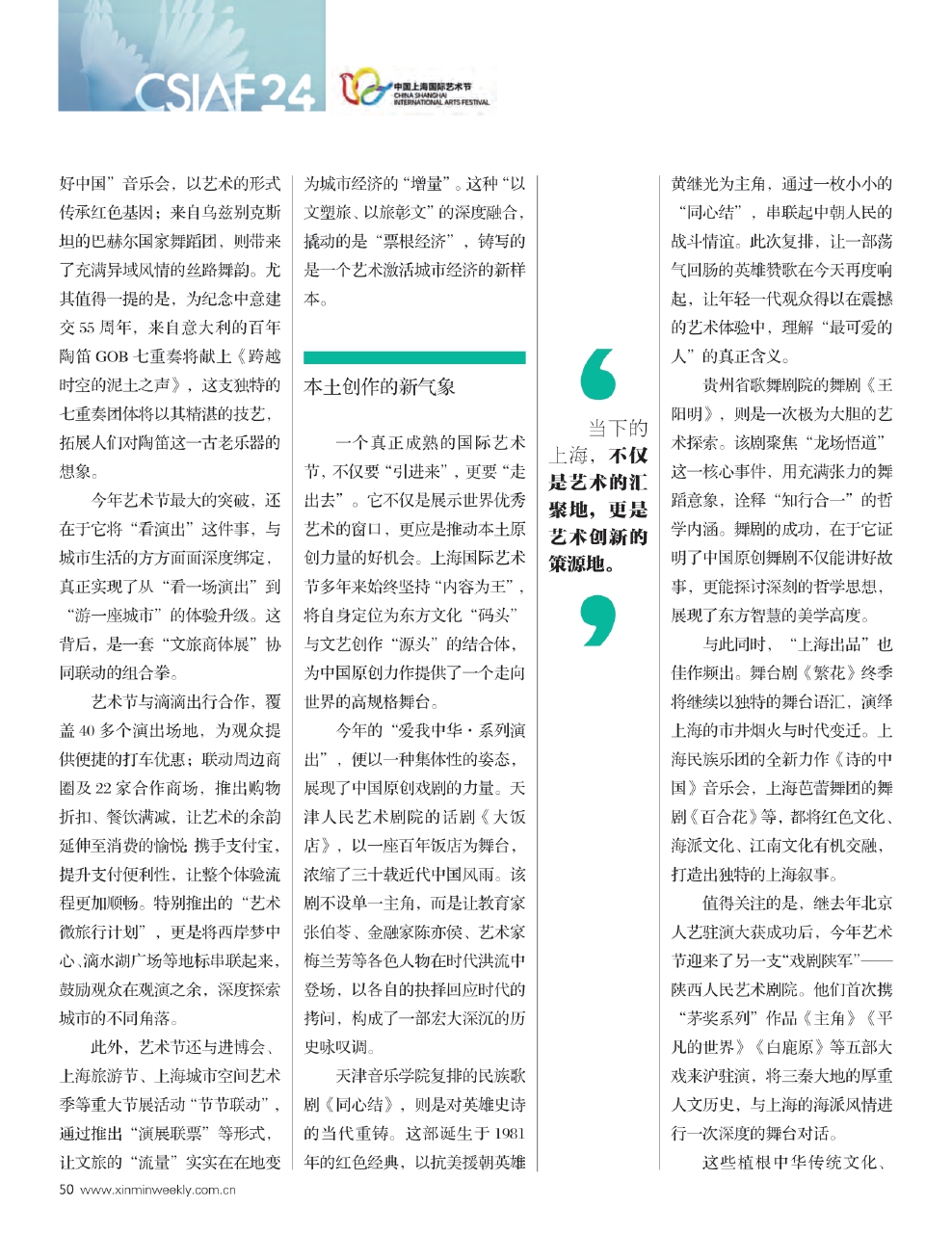 上图:第24届上海国际艺术节演出精彩纷呈。