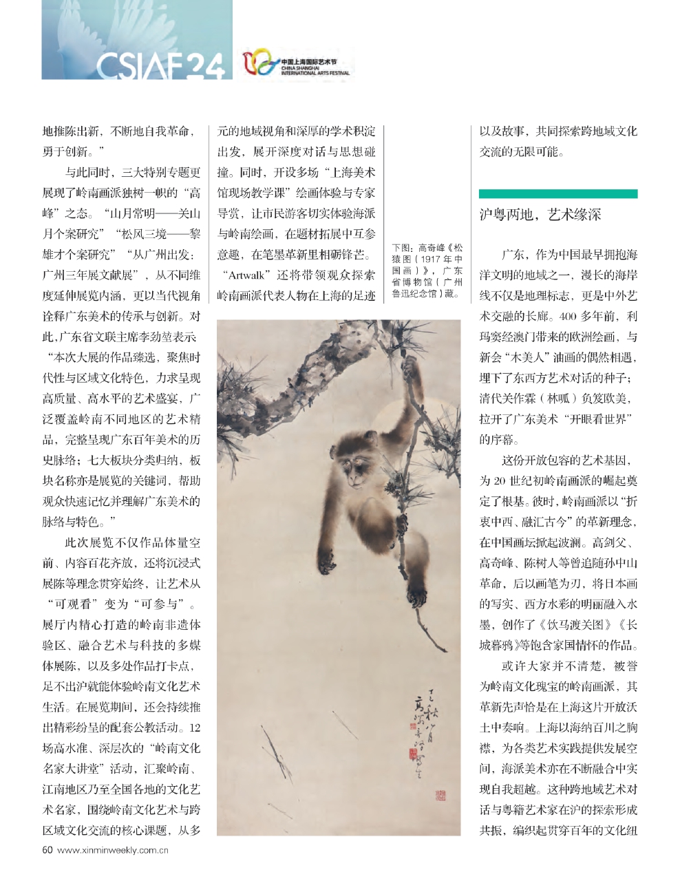 一个世纪后的今天,同样的革新精神在苏州河畔重新被唤醒,岭南美术的百年积淀与当代海派文化在此相遇,如同久别重逢的故人,展开跨越时空的对话。正如陈翔所说的那样:“这次的展览对于上海美术的启发是非常大的,上海在新时代应该更好地传承海派文化精神,通过构建良好的艺术生态,保持自我革新的先锋意识,完成从码头向源头的转型升级,做好城市文化IP宣传推广,让历史文脉在当代语境中焕发新生。”
