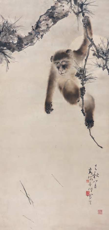 下图:高奇峰《松猿图(1917年中国画)》,广东省博物馆(广州鲁迅纪念馆)藏。