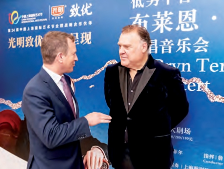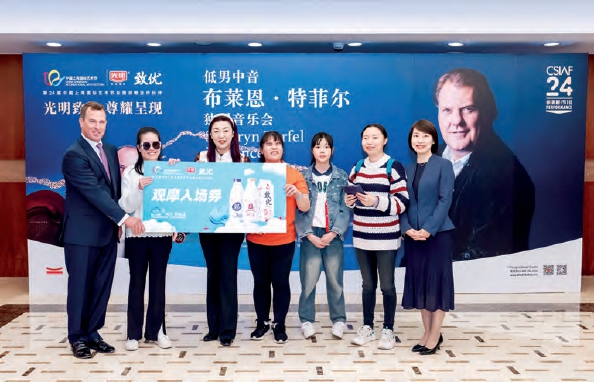 10月26日晚,由光明致优尊耀呈现的“低男中音布莱恩·特菲尔独唱音乐会”在上海大剧院上演。作为第24届中国上海国际艺术节的参演节目之一,本场音乐会显得尤为特别——光明致优品牌代言人、英国王室成员彼得·菲利普斯(Peter Mark Andrew Phillips)和上海的视障青年艺术家代表共同欣赏演出。演出结束后,光明乳业品牌日活动同步举行,在交流与互动中为这场声乐盛宴画上圆满句号。