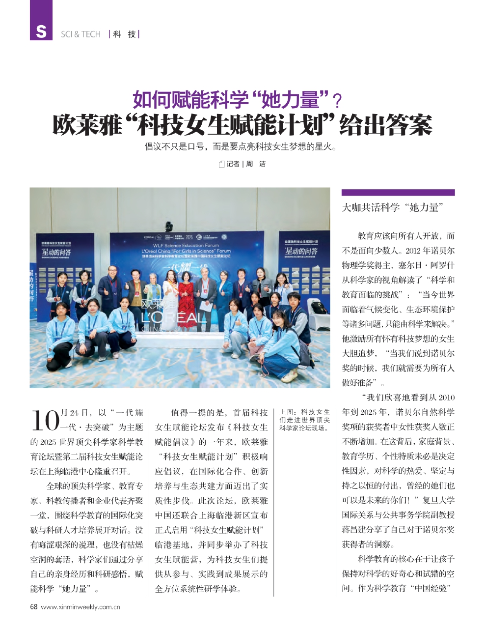 10月24日,以“一代耀一代·去突破”为主题的2025世界顶尖科学家科学教育论坛暨第二届科技女生赋能论坛在上海临港中心隆重召开。