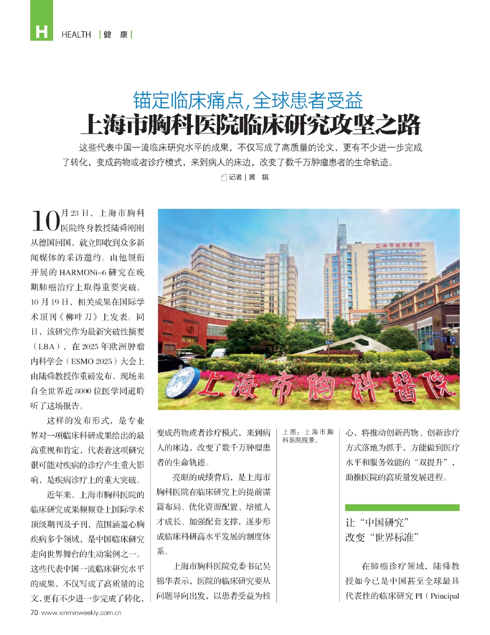 以上几位国际知名医学专家和他们频频登上顶刊的成果,是上海市胸科医院团队走向世界学术舞台的缩影,也是医院临床研究实力的反映。