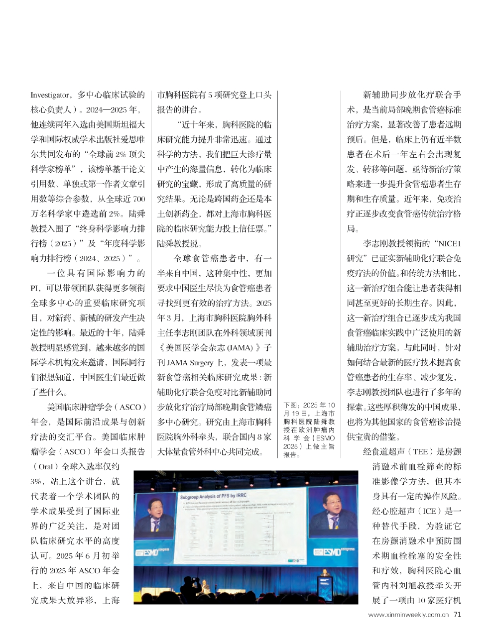 下图:2025年10月19日,上海市胸科医院陆舜教授在欧洲肿瘤内科学会(ESMO 2025)上做主旨报告。