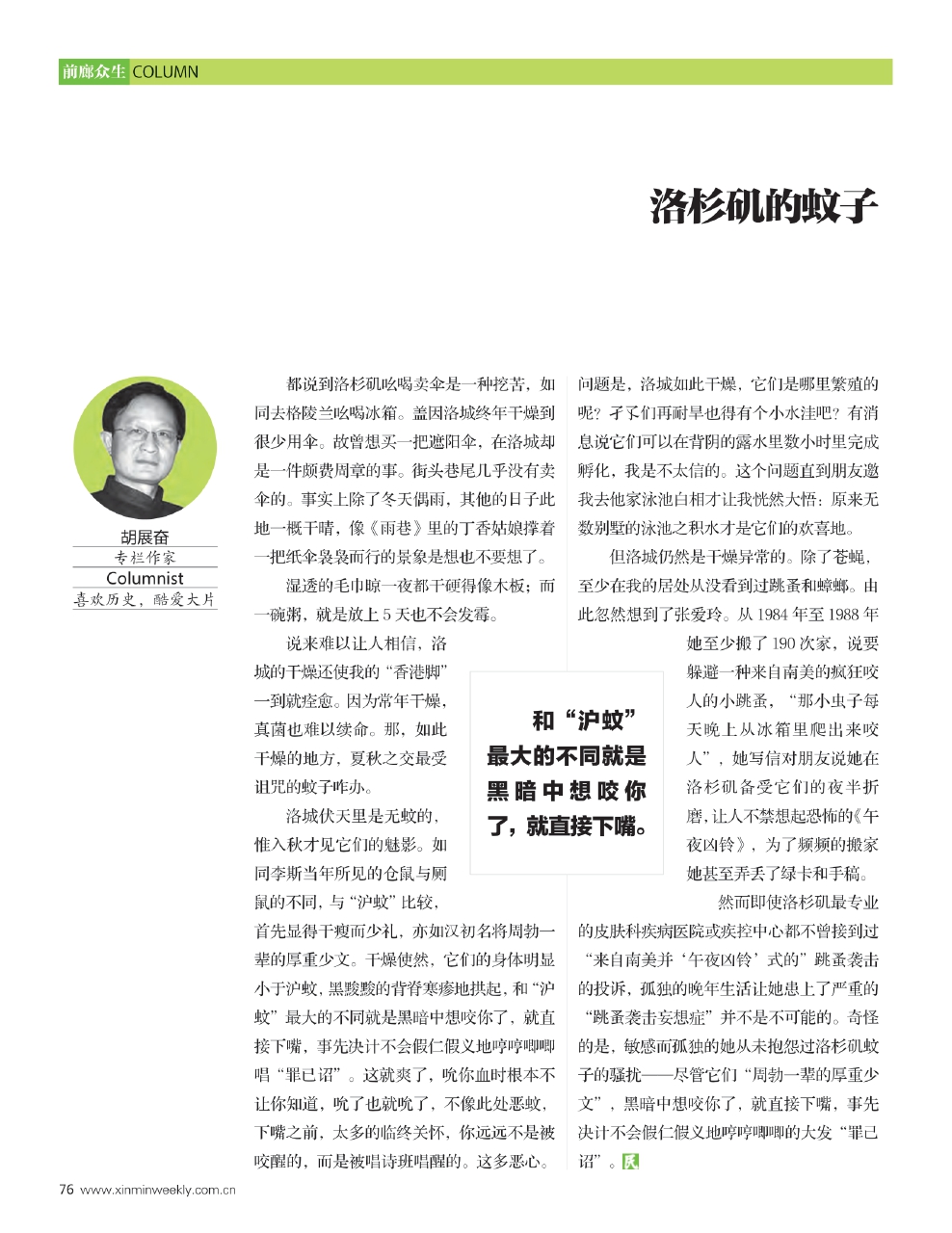 说来难以让人相信,洛城的干燥还使我的“香港脚”一到就痊愈。因为常年干燥,真菌也难以续命。那,如此干燥的地方,夏秋之交最受诅咒的蚊子咋办。