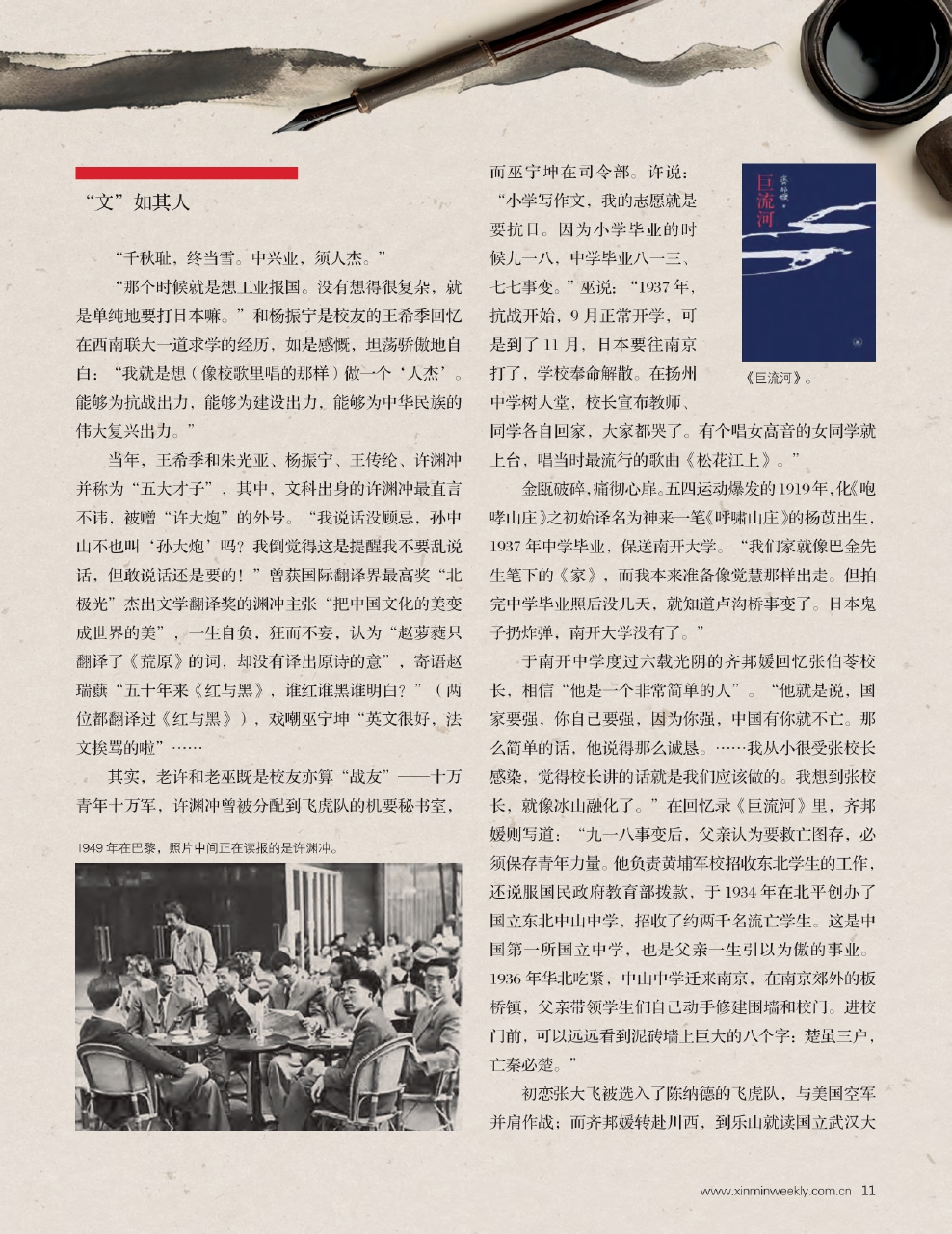 1949年在巴黎,照片中间正在读报的是许渊冲。