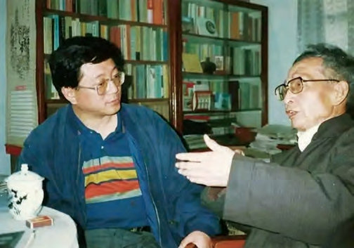 贾植芳先生(右)在家中与陈思和探讨问题。