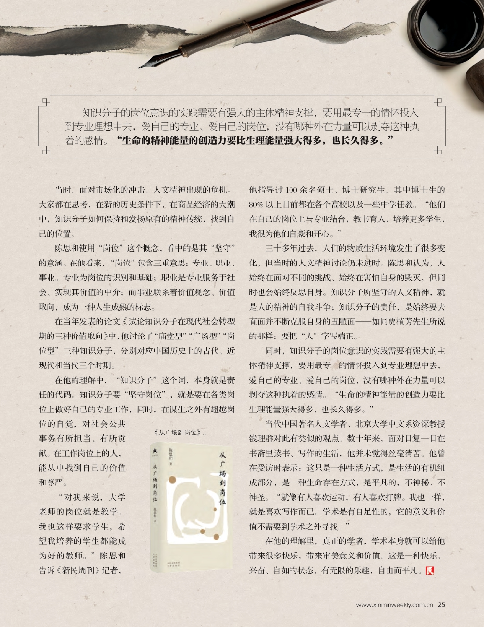 “我个人的学术努力,做得好与不好,我不太在意。但我觉得对学生怎么样,作为老师来说,这是我的本职工作,是我的岗位职责,我必须做好。行政工作,我更不需要,做不做看缘分。”陈思和向《新民周刊》记者表示。