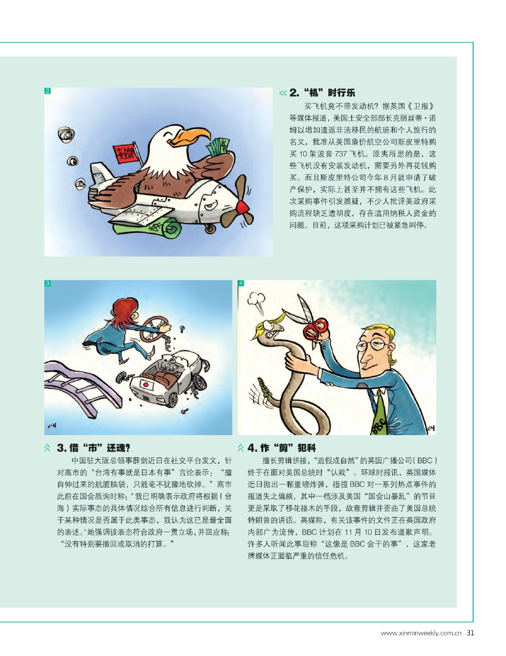 2.“机”时行乐 买飞机竟不带发动机?据英国《卫报》等媒体报道,美国土安全部部长克丽丝蒂·诺姆以增加遣返非法移民的航班和个人旅行的名义,批准从美国廉价航空公司斯皮里特购买10架波音737飞机。匪夷所思的是,这些飞机没有安装发动机,需要另外再花钱购买。而且斯皮里特公司今年8月就申请了破产保护,实际上甚至并不拥有这些飞机。此次采购事件引发质疑,不少人批评美政府采购流程缺乏透明度,存在滥用纳税人资金的问题。目前,这项采购计划已被紧急叫停。