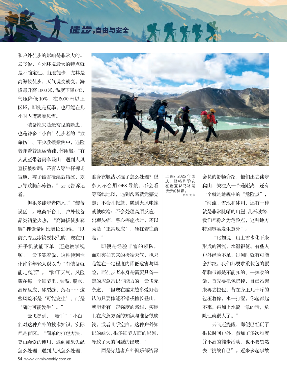 “徒步的魅力在于探索自然,而不是挑战危险。”云飞在结束采访时说,“只有心怀敬畏、做好准备,才能真正享受徒步的快乐,守护这份对户外的热爱。”
