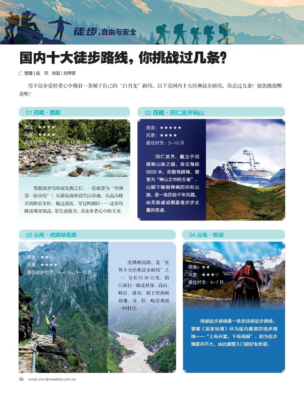 每个徒步爱好者心中都有一条属于自己的“白月光”路线。以下是国内十大经典徒步路线,你走过几条?最想挑战哪条呢?